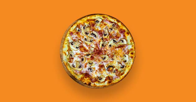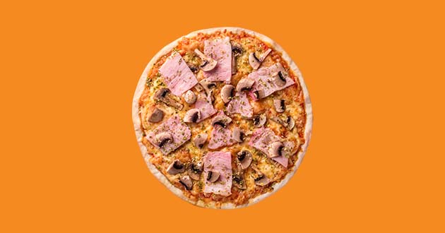 Salcë, mozzarella, proshut viçi, kërpudha(Sauce, mozzarella,veal ham,mushrooms
